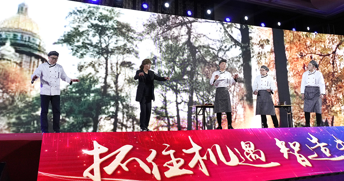 年会盛典在《回眸2019 展望2020》的视频播放中拉开了大幕,2019年的点点滴滴似乎就在眼前,鼓舞着员工不忘初心,奋力向前,2020年的号角已经吹响,激励着我们同心聚力,再创辉煌。开场舞《团团圆圆》喜庆登场,7名年轻活泼的美少女一下点燃了年会盛典的现场,将欢乐和吉祥送给现场的每位来宾和EBET易博的家人们……